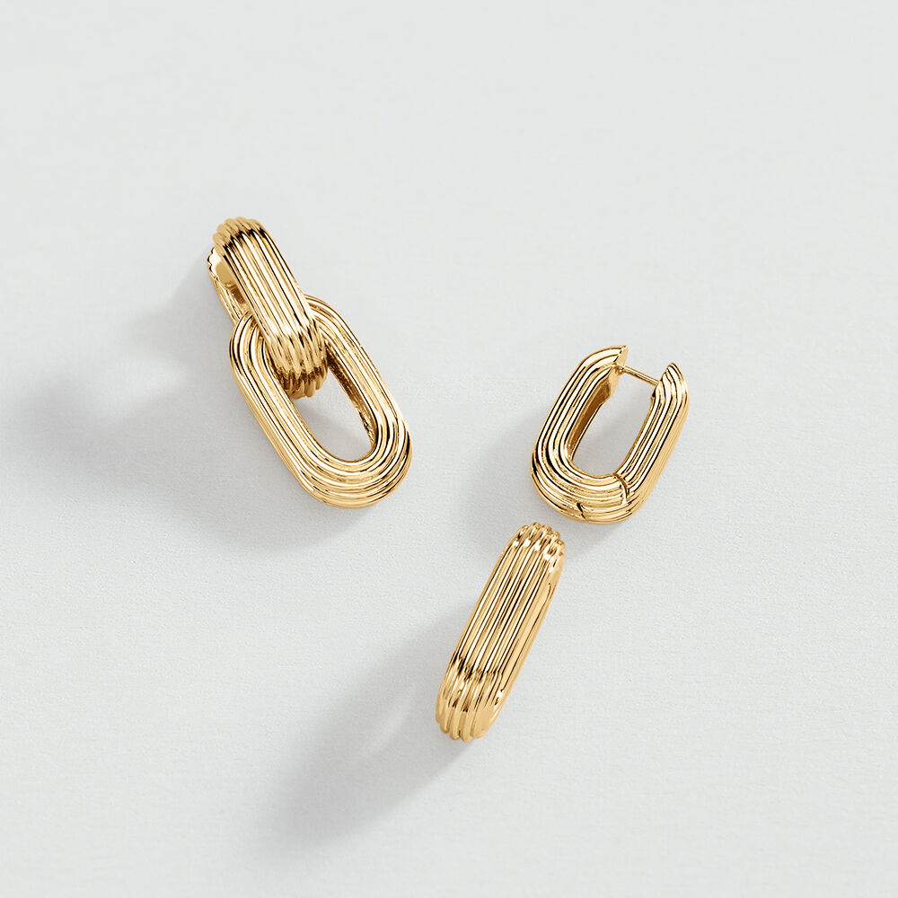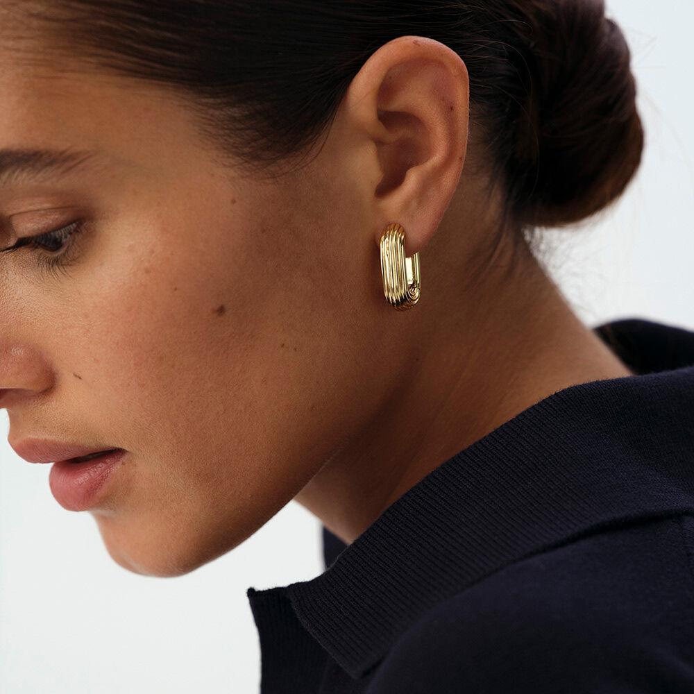 Ces boucles d’oreilles de notre collection HAUSSMANN, imaginées à Paris, sont réalisées en laiton doré à l’or 750/1000e – 18 carats et ornées d’oxydes de zirconium.Ces boucles d’oreilles reprennent une collection archive d’Agatha, inspirée de l’univers Art Déco. Leur texture striée et leur look tendance sublimeront vos tenues.Afin de s'adapter à vos envies, elles peuvent se porter simples, en retirant le deuxième anneau, ou doubles.