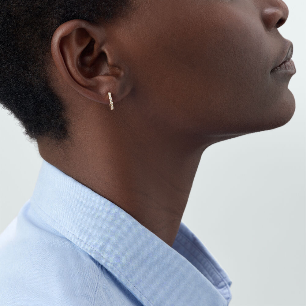 Cette créole de notre concept MIX & MATCH est réalisée en argent 925 doré à l'or 750/1000e - 18 carats et ornée d'oxydes de zirconium. Elle est disponible en couleur violet, vert, rose et cristal.Vendu à l'unité, pour mieux les mixer et les accumuler.
