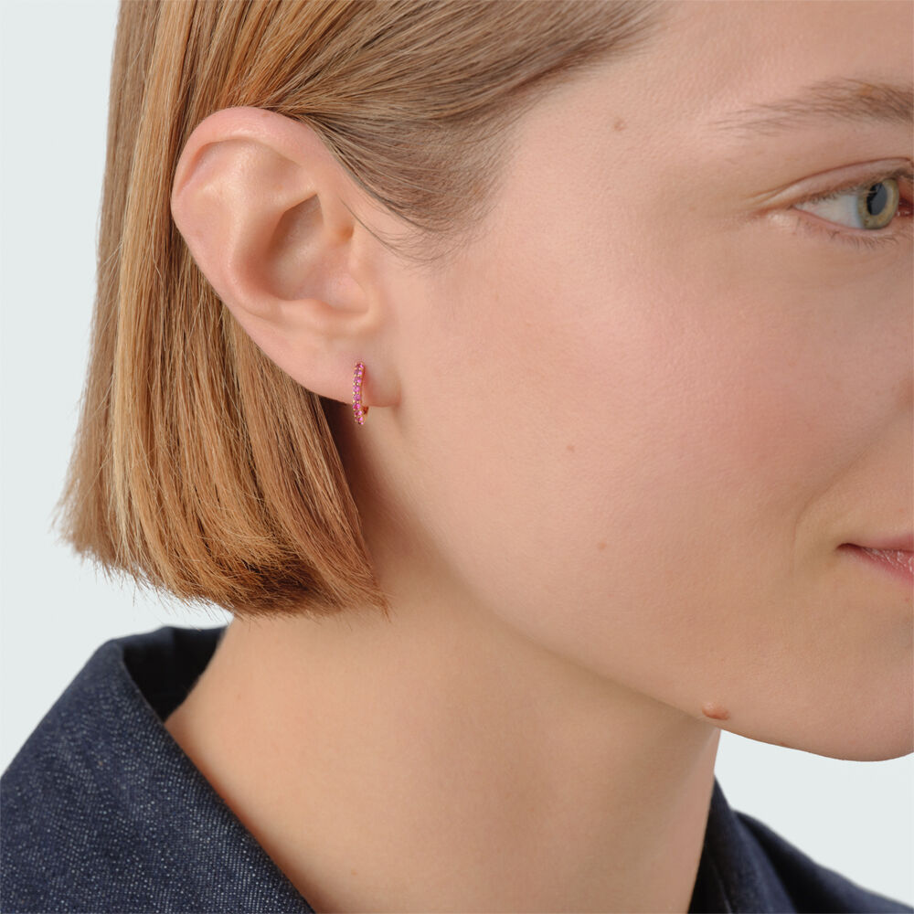 Cette créole de notre concept MIX & MATCH est réalisée en argent 925 doré à l'or 750/1000e - 18 carats et ornée d'oxydes de zirconium. Elle est disponible en couleur violet, vert, rose et cristal.Vendu à l'unité, pour mieux les mixer et les accumuler.