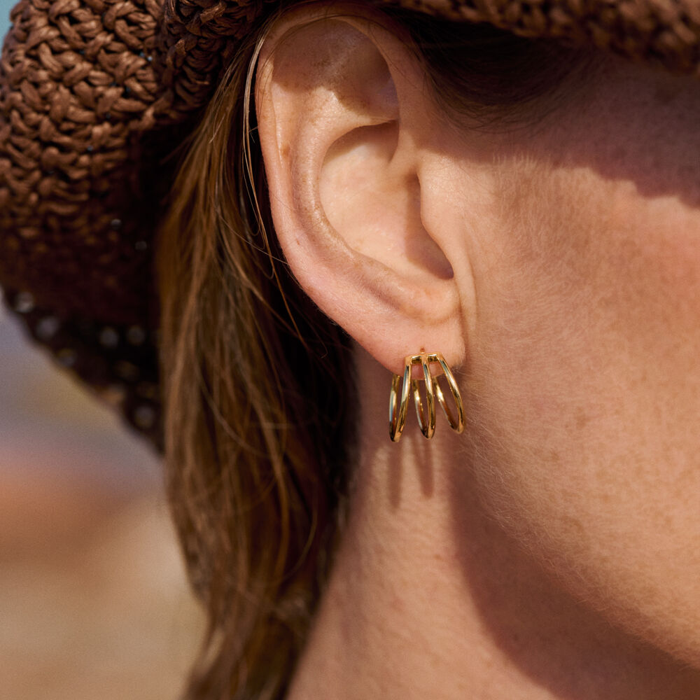 Créoles trois fils en argent 925/1000 doré à l'or 750/1000.