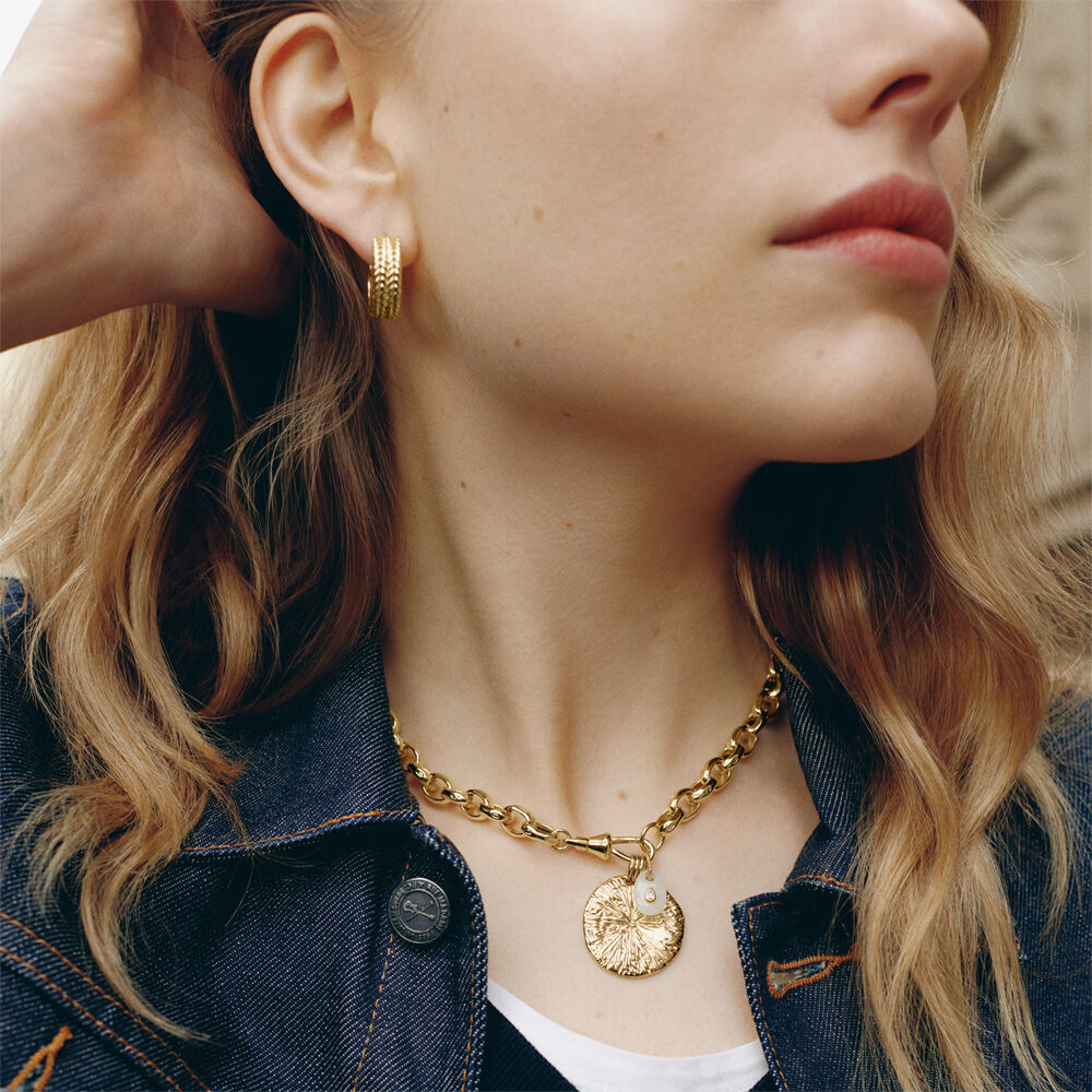 Créoles en laiton doré à l'or fin en forme de deux tresses collées. Ces créoles font 15mm de diamètre.