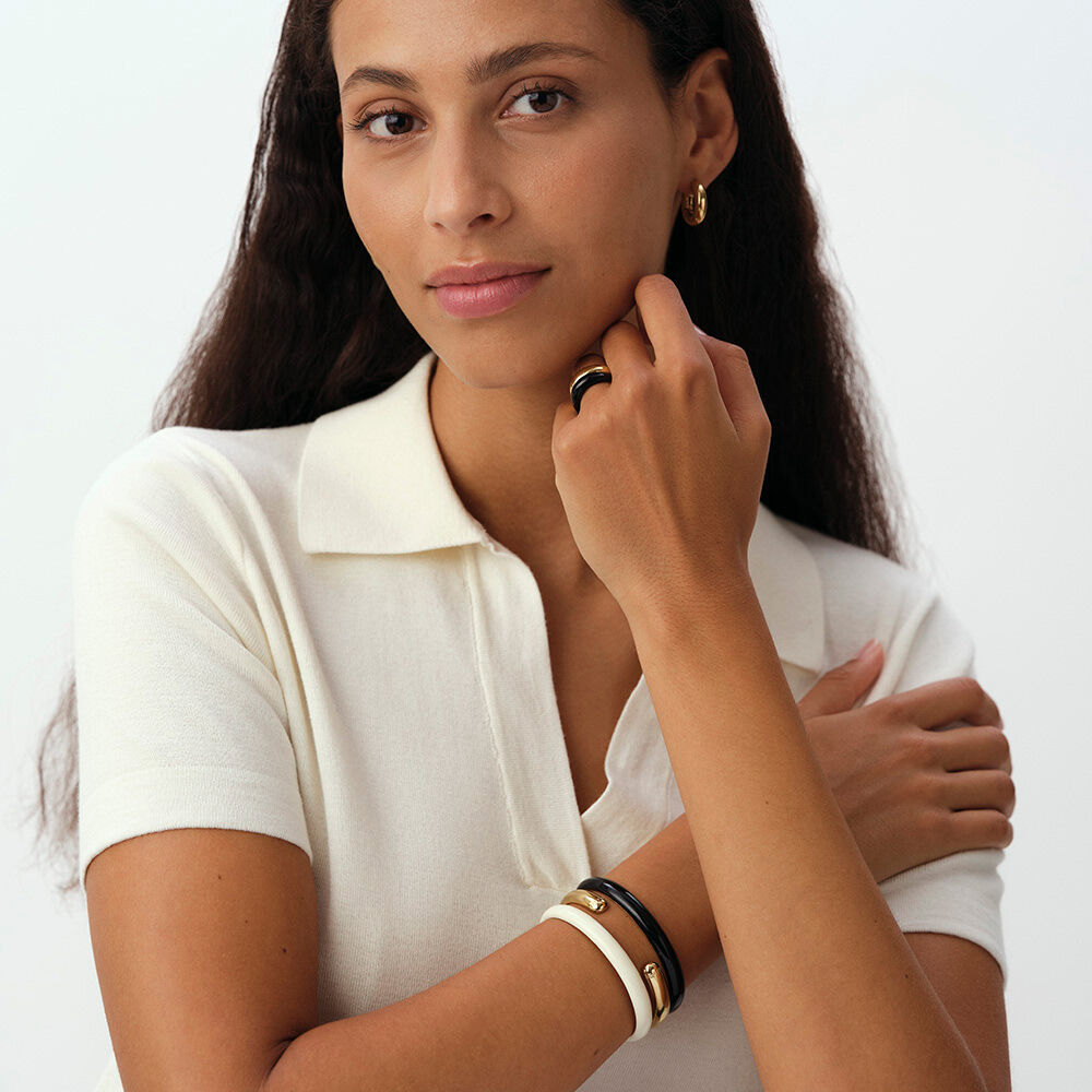 Un bracelet jonc en acier inoxydable au design épuré et minimaliste.
