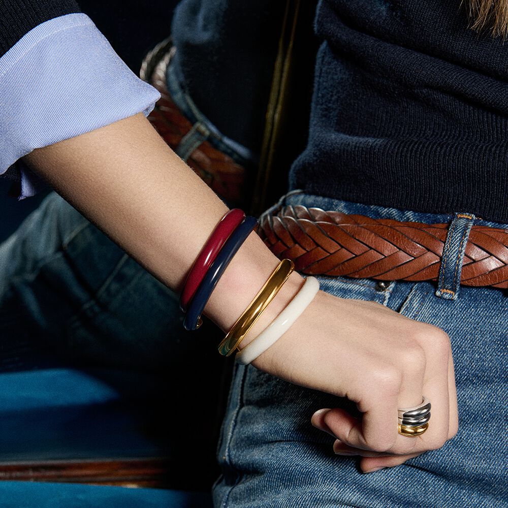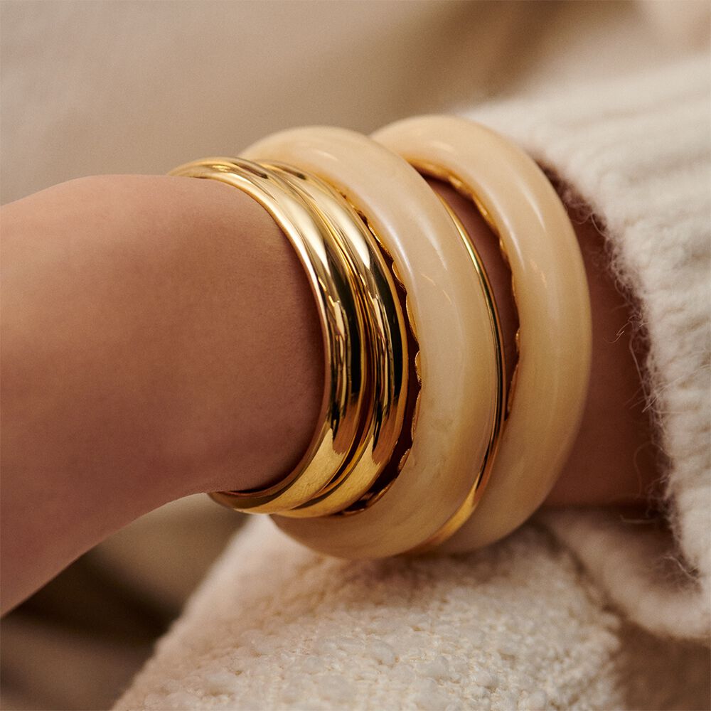 Jonc bombé ouvert, en laiton doré à l'or fin, lisse ou émaillé. .