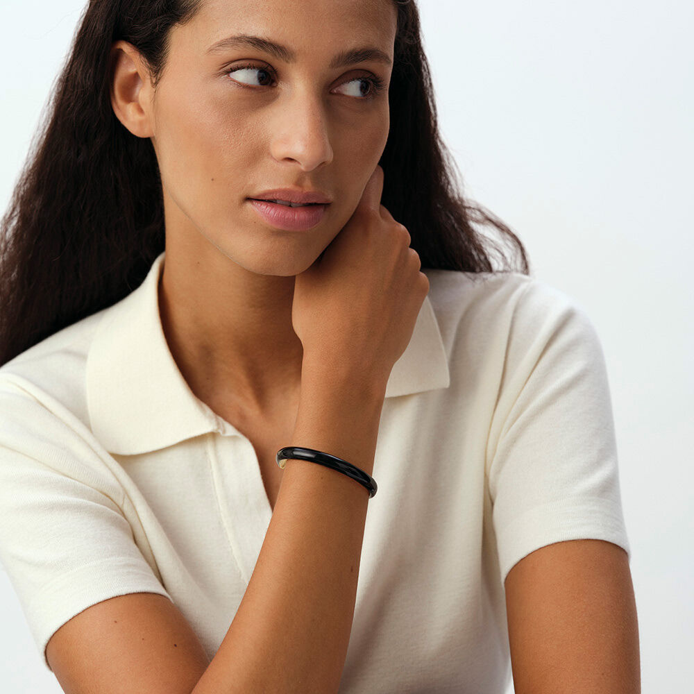 Un bracelet jonc en acier inoxydable au design épuré et minimaliste.