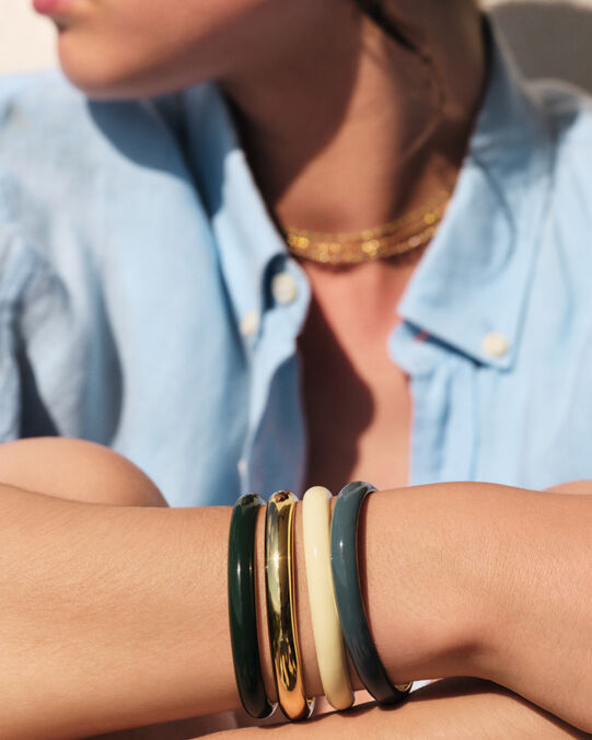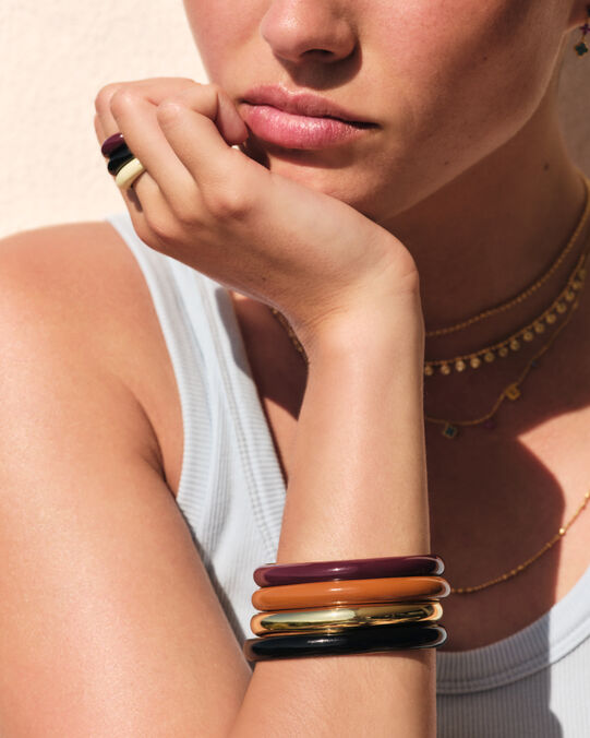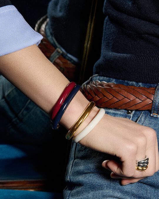 Jouer avec l'accumulation est justement l'une des grandes tendances en bijouterie. Superposer plusieurs bracelets joncs apporte du mouvement à votre tenue et révèle subtilement votre personnalité. Que vous préfériez l’harmonie des couleurs similaires ou le dynamisme de jolis contrastes, vous trouverez forcément une combinaison qui vous ressemble !
