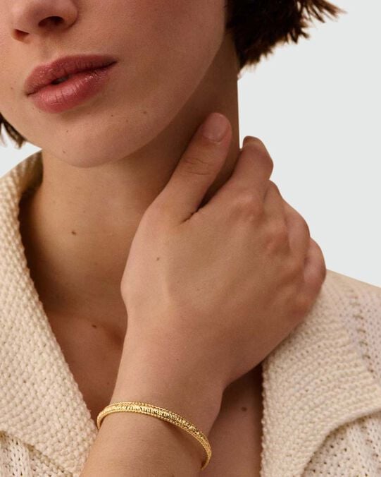 Reconnaissable entre tous, le jonc se distingue par sa forme rigide et circulaire. Contrairement aux bracelets souples, il conserve sa structure et offre un tombé élégant sur le poignet. Disponible en version fermée ou semi-ouverte, il s’enfile facilement et assure un confort optimal tout au long de la journée.