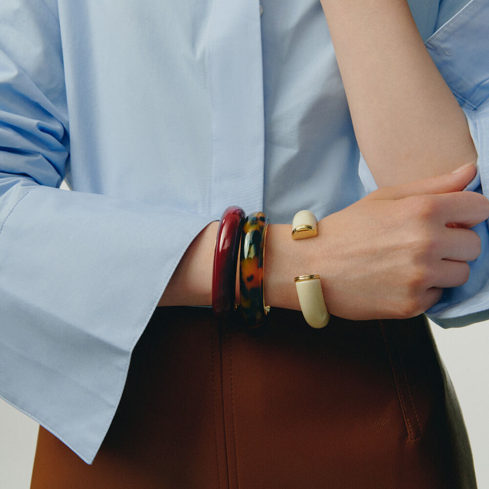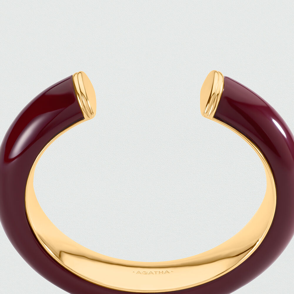 Ce jonc de notre collection PALAIS ROYAL, imaginé à Paris, est réalisé en laiton doré à l’or 750/1000e – 18 carats et acétate.Il est disponible en couleur Bordeaux, Ivoire ou Léopard.Produit iconique d’Agatha, ce jonc apporte une touche de couleur à vos tenues.