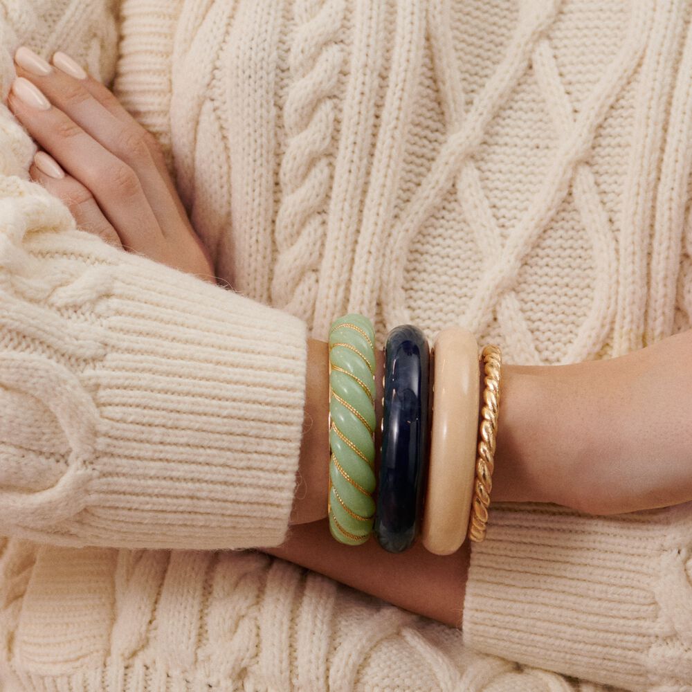 Jonc en résine torsadé, 2 fils métal enroulé autour sur une base en laiton doré 750/1000.