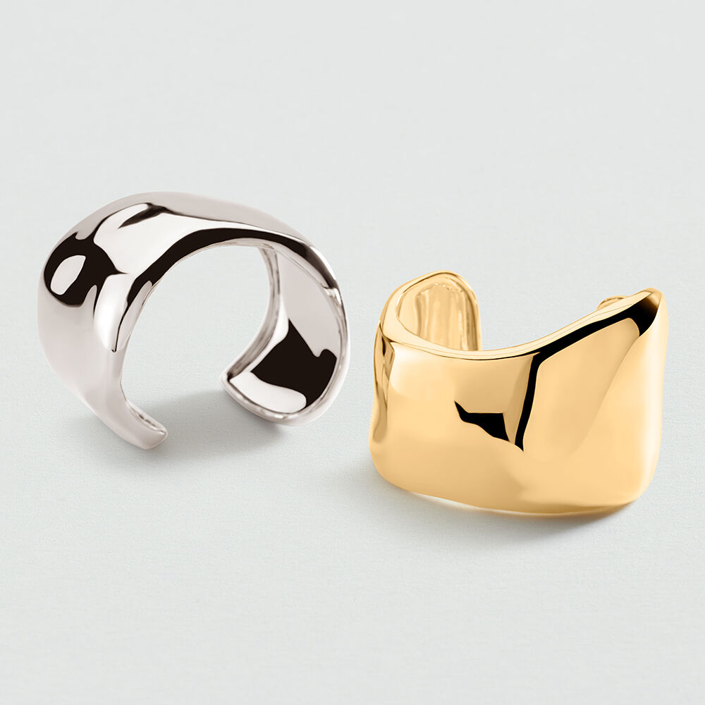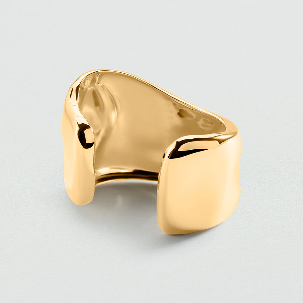 Manchette galet de notre collection ODYSSÉE, imaginée à Paris, réalisée en laiton doré à l'or 750/1000e - 18 carats.