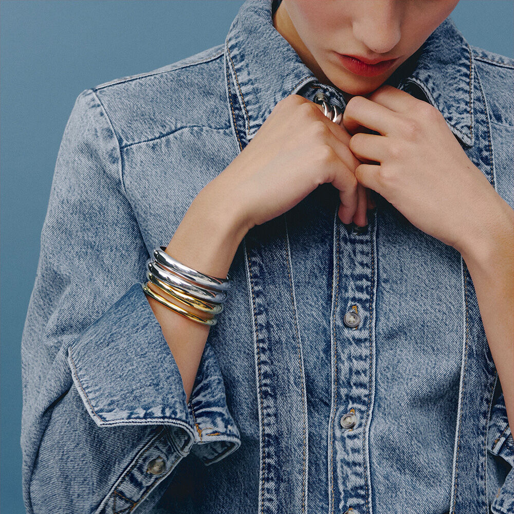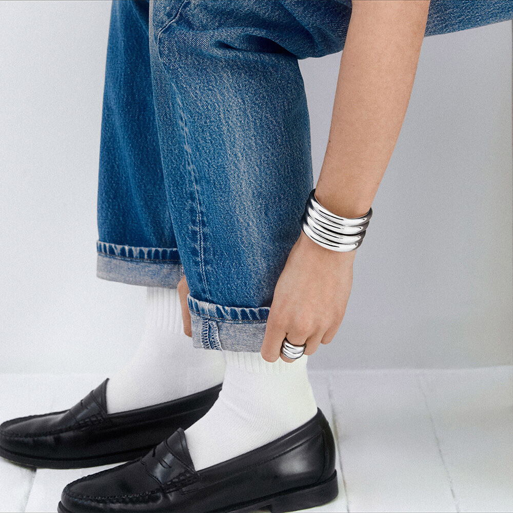 Ce bracelet double de notre collection RUE DE SEINE, imaginé à Paris, est réalisé en Argent 925.Il mêle volumes généreux et détails contrastés pour une élégance épurée au caractère affirmé.