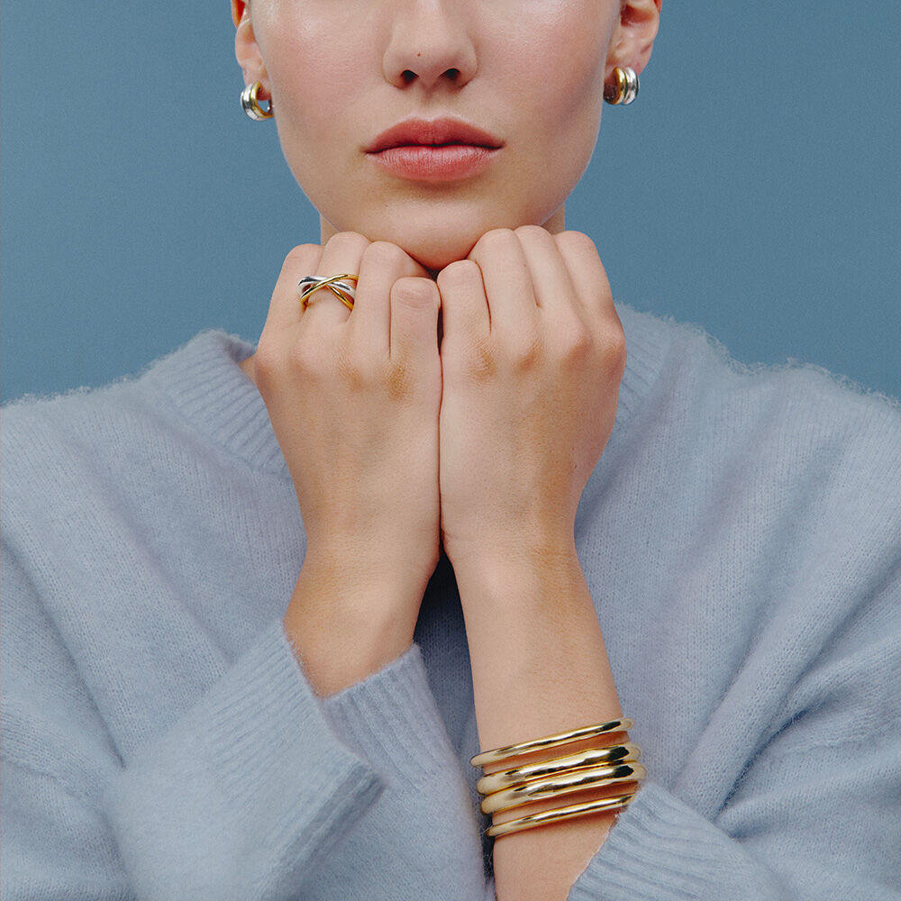 Ce bracelet double de notre collection RUE DE SEINE, imaginé à Paris, est réalisé en Argent 925 doré.Il mêle volumes généreux et détails contrastés pour une élégance épurée au caractère affirmé.