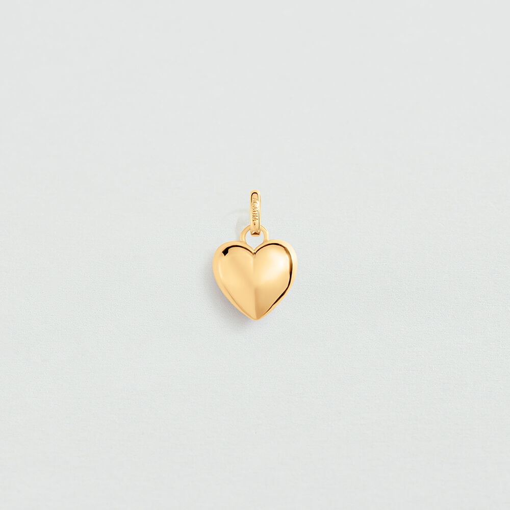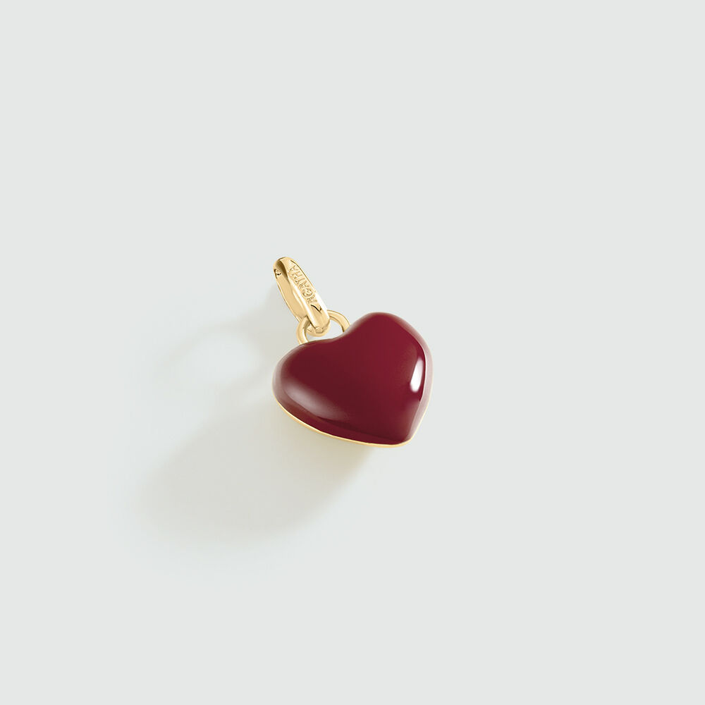 Pendentif en laiton doré, cœur en métal orné d'émail rouge.