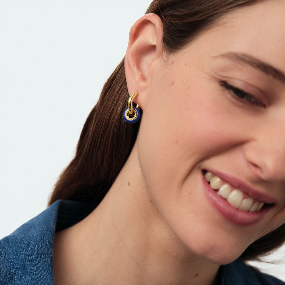 Pendentif donut de notre collection TALISMANS, imaginé à Paris, réalisé en laiton doré à l'or 750/1000e - 18 carats. Il est disponible en lapis lazuli, oeil de tigre, jaspe rouge ou amazonite. Personnalisez votre bijou et changez-le au gré de vos envies, en l’associant seul ou en accumulation avec nos créoles et colliers de la collection Talismans.