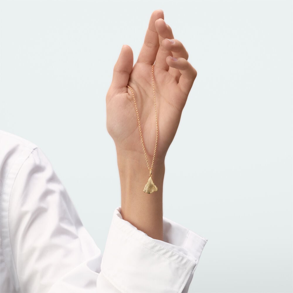 Pendentif feuille de Ginko de notre collection TALISMANS, imaginé à Paris, réalisé en laiton doré à l'or 750/1000e - 18 carats. Personnalisez votre bijou et changez-le au gré de vos envies en ajoutant à votre base un ou plusieurs pendentifs charms de notre collection Talismans.