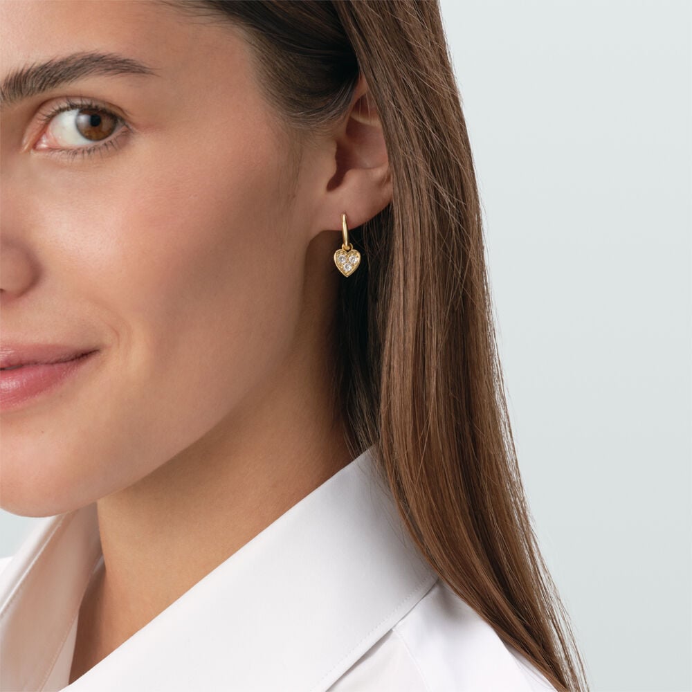 Pendentif coeur de notre collection TALISMANS, imaginé à Paris, réalisé en laiton doré à l'or 750/1000e - 18 carats et orné d'oxydes de zirconium. Personnalisez votre bijou et changez-le au gré de vos envies en ajoutant à votre base créole à pampilles, un ou plusieurs pendentifs charms de notre collection Pampilles créoles Talisman
