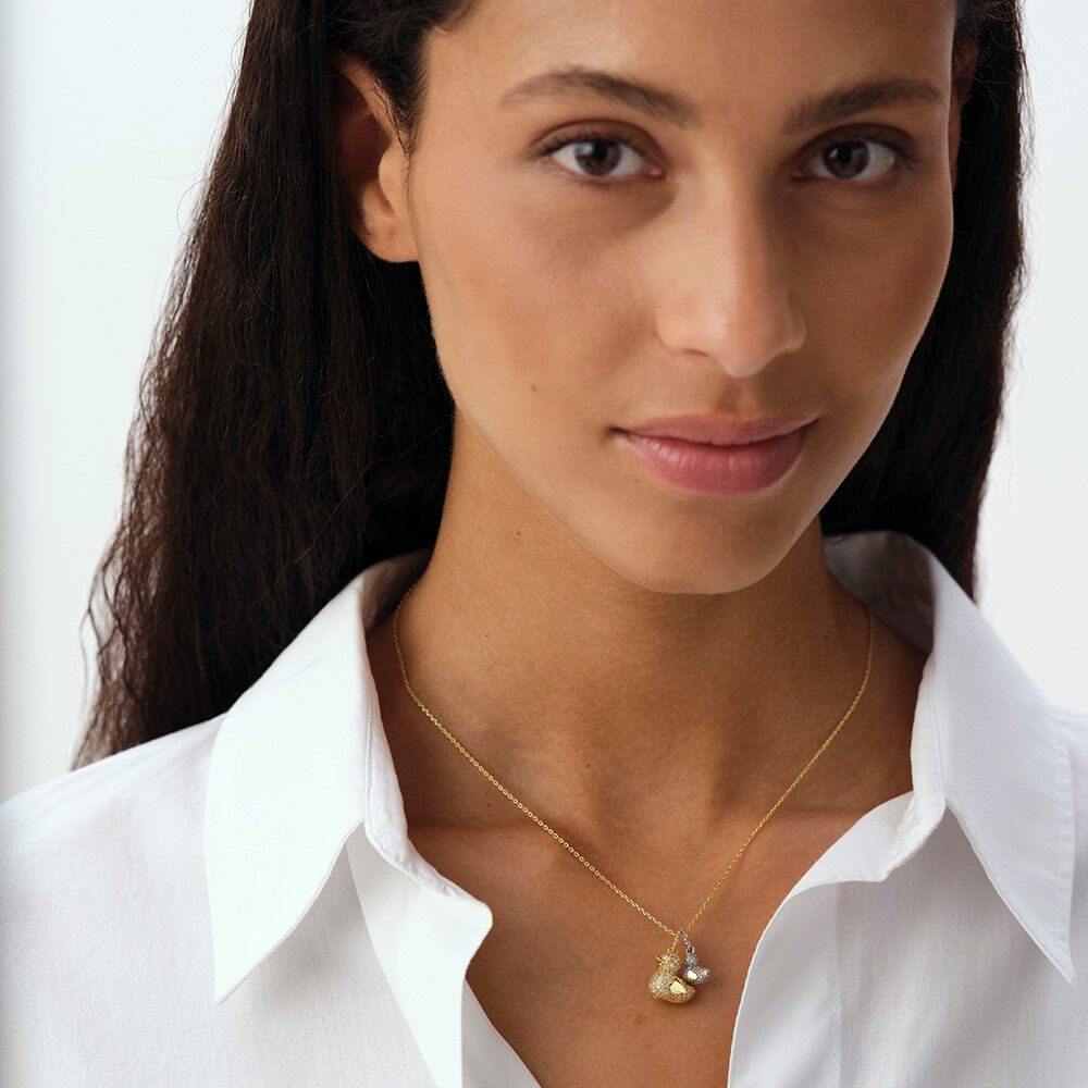 Ce pendentif canard de notre collection PATITO, imaginé à Paris, est réalisé en laiton doré à l’or 750/1000e – 18 carats avec ou sans oxydes de zirconium.Célébrez votre tribu en composant un bijou unique avec PATITO, nos nouveaux pendentifs de la gamme TALISMANS.Symbole de l’amour maternel, la maman canard guide et protège ses petits, toujours à ses côtés.En strass, bicolore, doré ou argenté, composez votre propre famille et amusez-vous à associer les couleurs et les textures pour créer un bijou qui vous ressemble.
