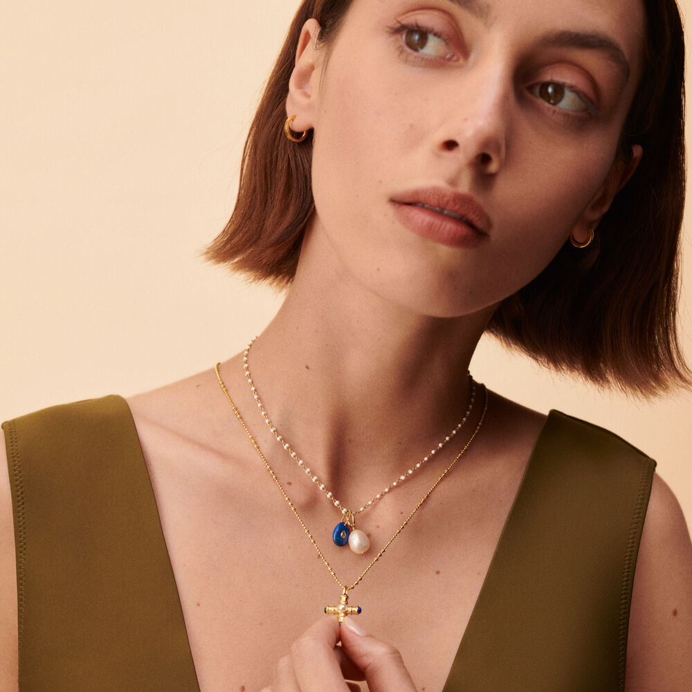 Pendentif charm en pierre naturelle incrustée d'un oxyde de zirconium. Créez votre bijou unique et personnalisé en l'associant à d'autres pendentifs charms et la chaîne de votre choix.