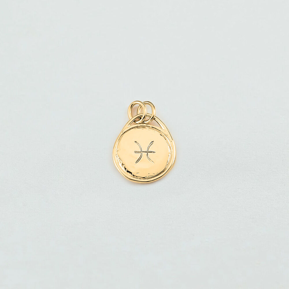 Médaille zodiaque Poissons. Rêveuse et sensible, cette médaille made in France reflète la profondeur des Poissons. En laiton doré à l’or 750/1000, gravée à la main recto verso : deux poissons en mouvement, un monde intérieur infini.