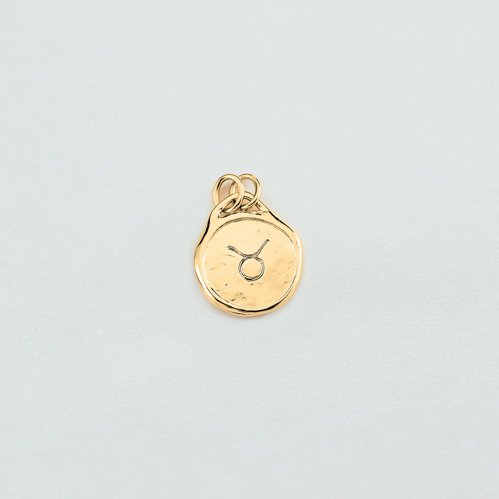 Médaille zodiaque Taureau. Stabilité et sensualité se rencontrent dans cette médaille précieuse fabriquée en France. Gravée à la main sur laiton doré à l’or 750/1000, elle révèle la force tranquille du Taureau et son lien à la nature.
