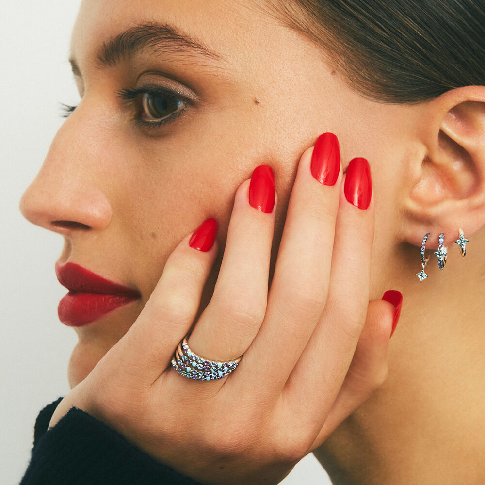 Set de 3 boucles d'oreilles créoles, en argent véritable rhodié, dont le motif récurrent est une forme de fleur.