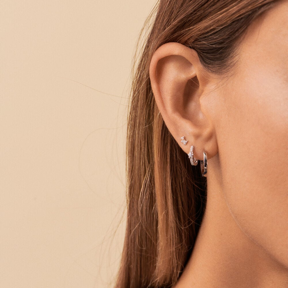 Mini créole en argent véritable ornée d'une fleur pavée d'oxydes de zirconium en pampille. A l'unité, pour mieux les mixer et les accumuler.