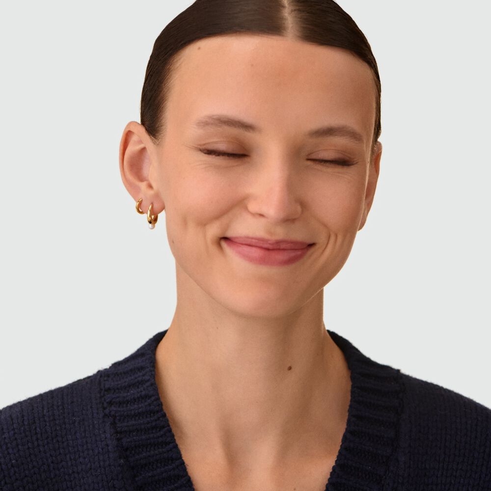Créole, en argent 925/1000 doré 750/1000, fil épais avec une perle centrale. A l'unité, pour mieux les mixer et les accumuler..