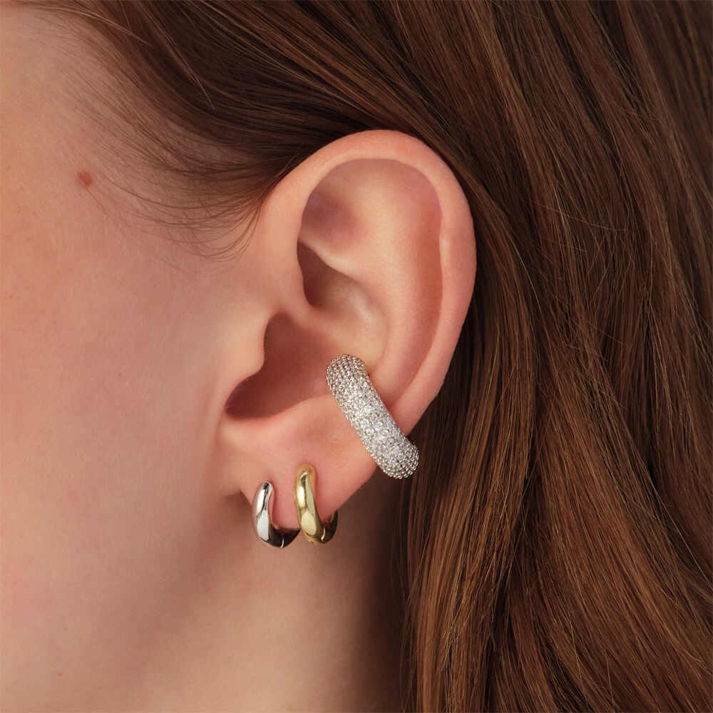 Ce earcuff de notre collection DANAE, imaginé à Paris, est réalisé en laiton doré à l'or 750/1000e et orné d'oxydes de zirconium.Ce earcuff simple et épuré est serti d'oxydes pour un look plus chic. Il peut s'associer avec d'autres bijoux de notre collection permanente DANAE.