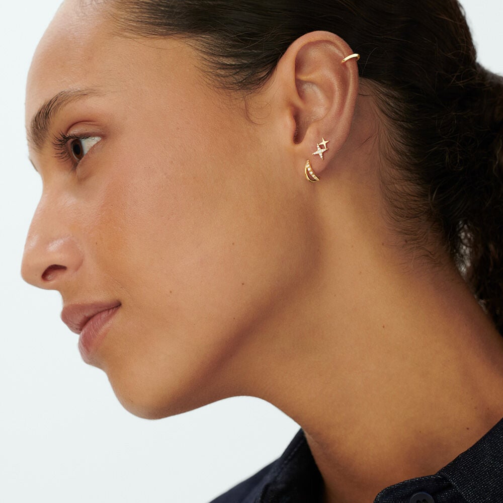 Mini créole à l'unité, en argent doré 750/1000, anneau fin type piercing qui permet de le porter à l'hélix ou sur le tragus.