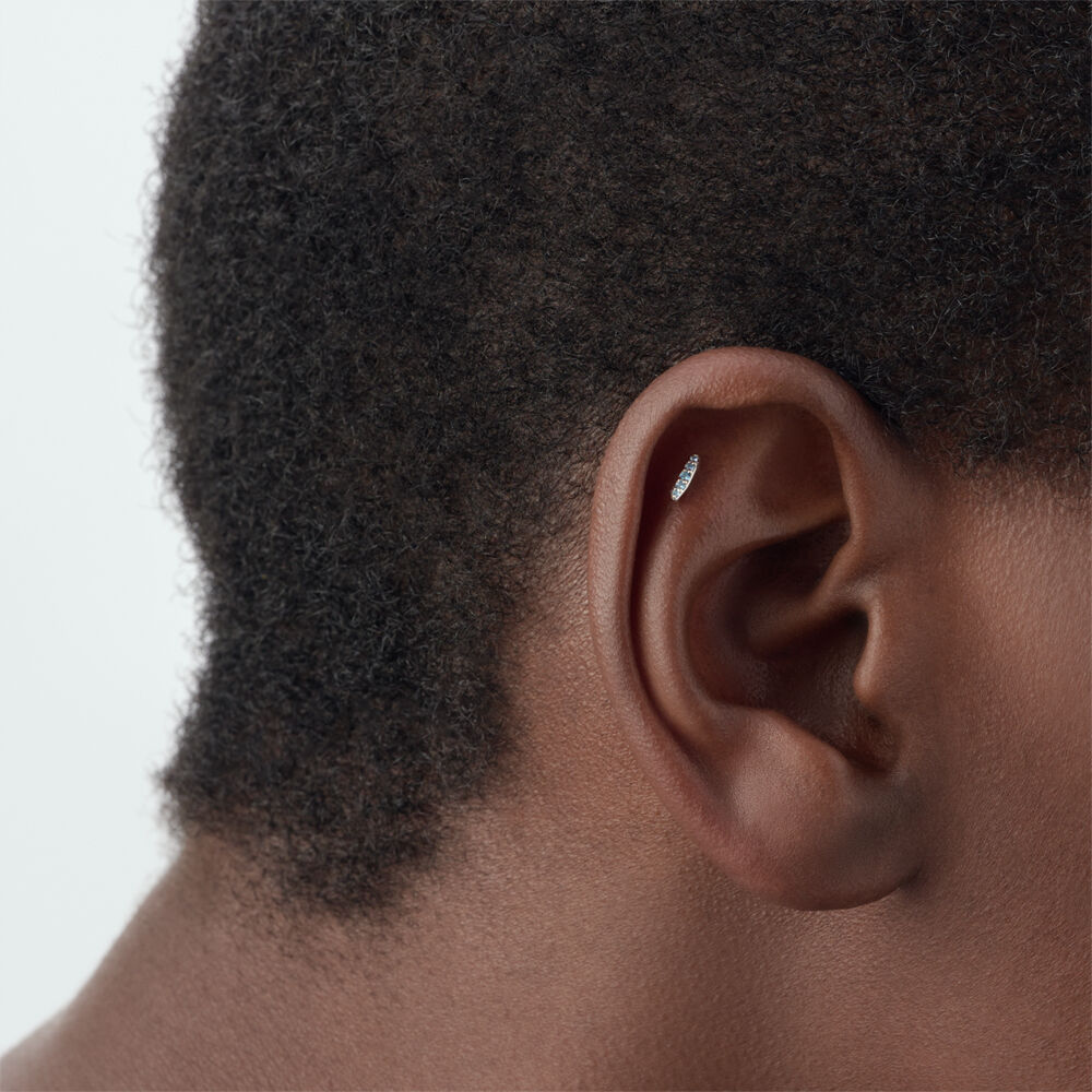 Ce piercing grain de riz de notre concept MIX & MATCH est réalisé en argent 925 rhodié et orné d'oxydes de zirconium. Vendu à l'unité, pour mieux les mixer et les accumuler.