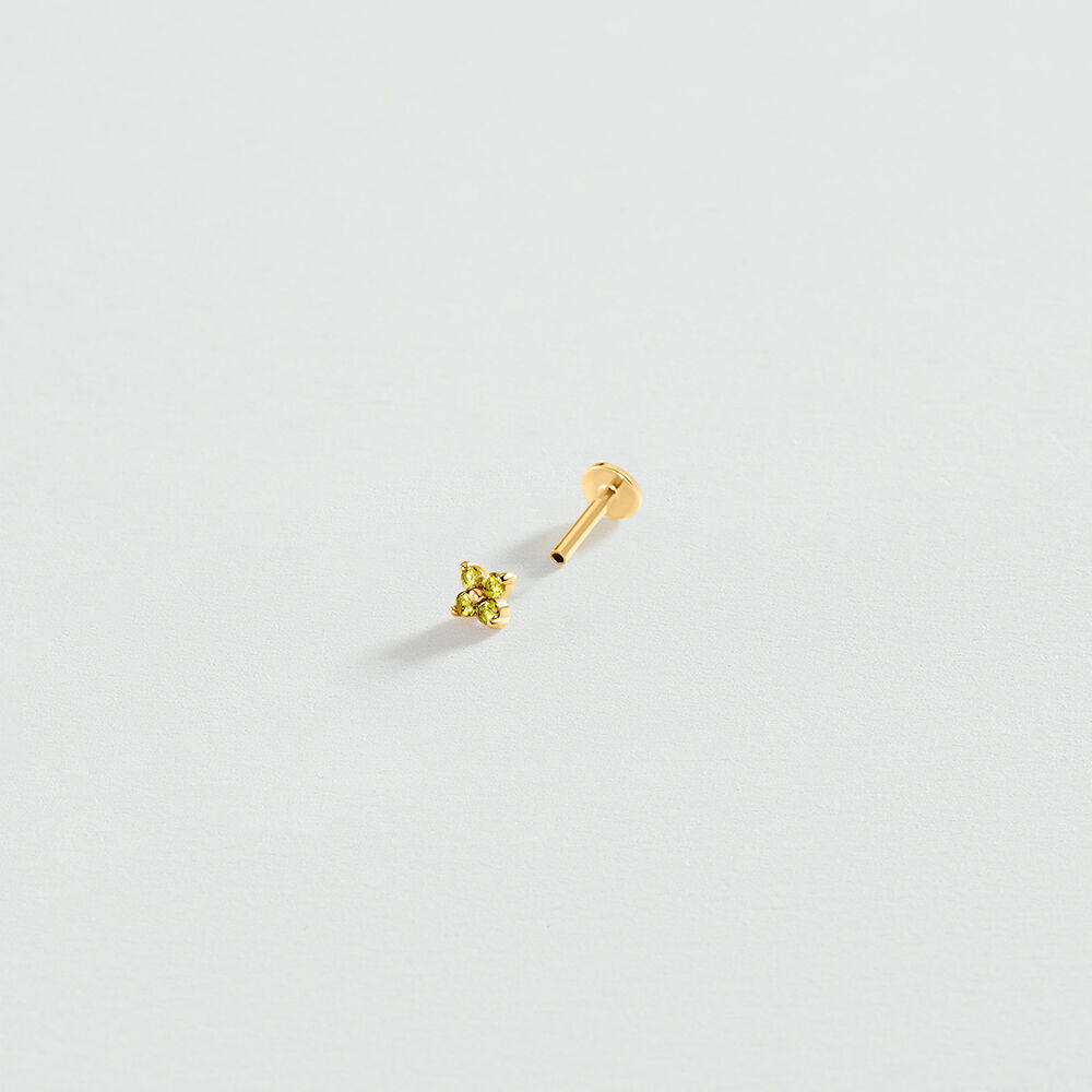 Ce piercing fleur de notre concept MIX & MATCH est réalisé en argent 925 doré à l'or 750/1000e - 18 carats et orné d'oxydes de zirconium. Il est disponible en couleur vert ou rose. Vendu à l'unité, pour mieux les mixer et les accumuler.