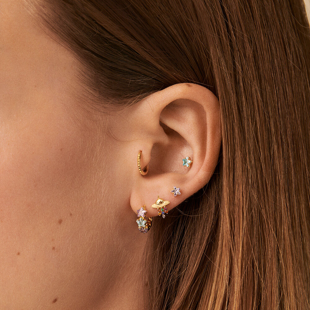Boucle d'oreille puce à l'unité, en argent doré 750/1000, oxyde de zirconium en forme d'étoile.