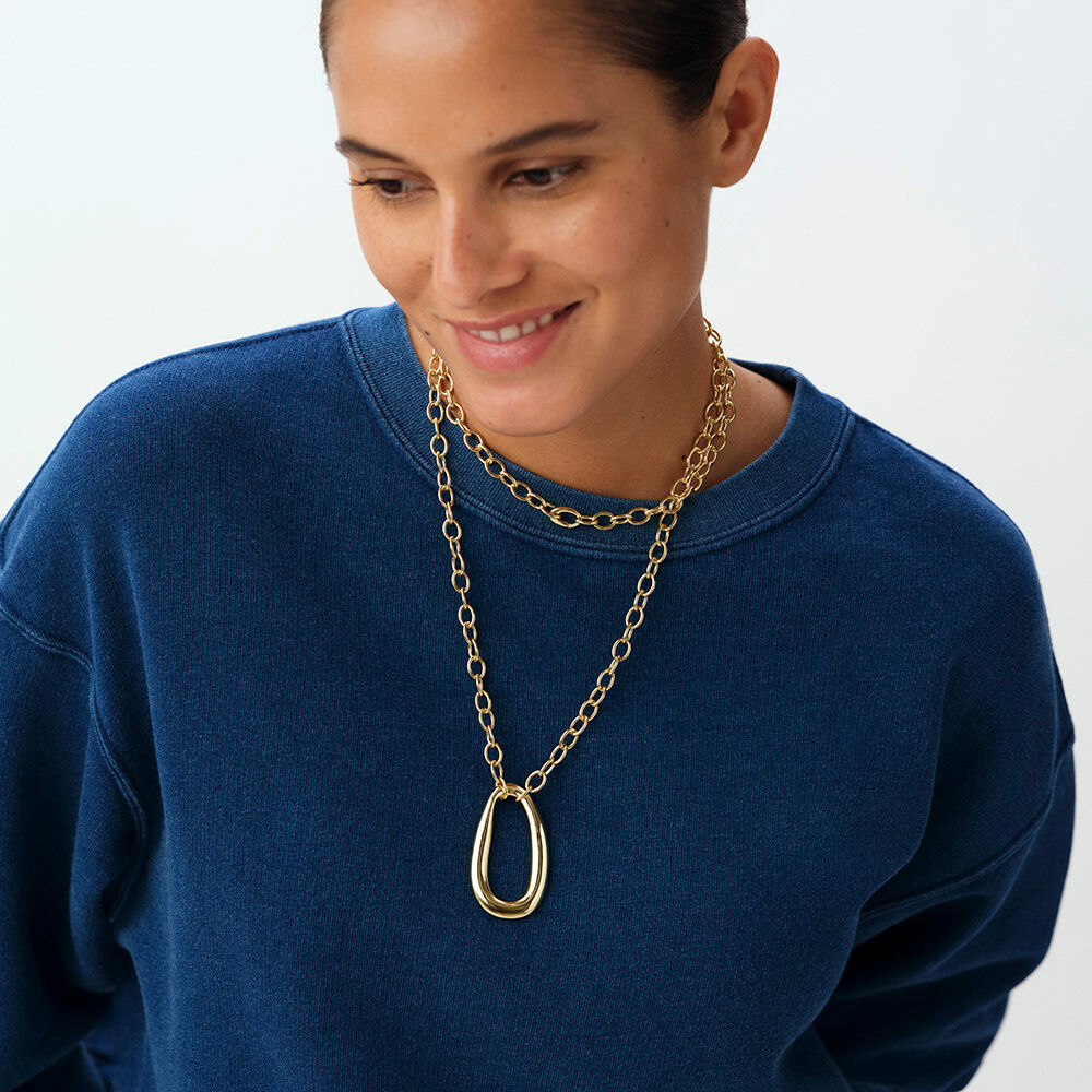 Ce collier de notre collection ABBESSES, imaginé à Paris, est réalisé en laiton doré à l’or 750/1000e – 18 carats. Sa forme organique et aérée donne une touche d’élégance et de liberté à vos tenues. Pour s'adapter à vos envies, il peut se porter simple ou double autour du cou.
