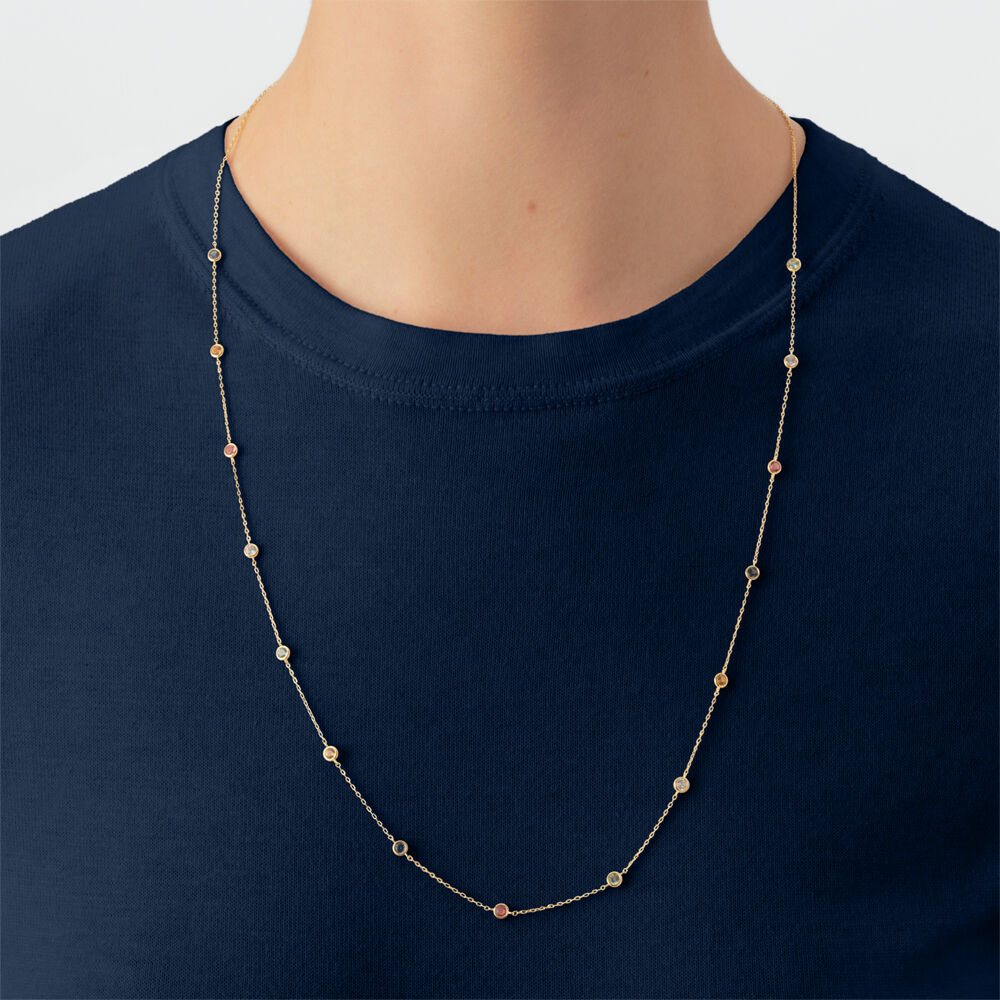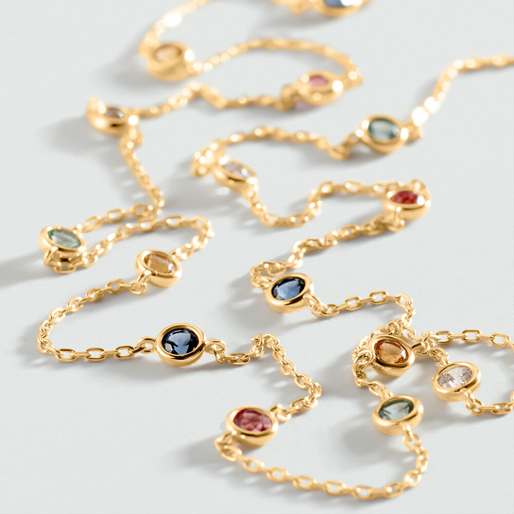 Sautoir en argent 925/1000 doré à l'or 750/1000 serti d'une multitude d'oxydes de zirconium. . Ce bijou mesure 700 mm auquel s’ajoute une rallonge de 50 mm