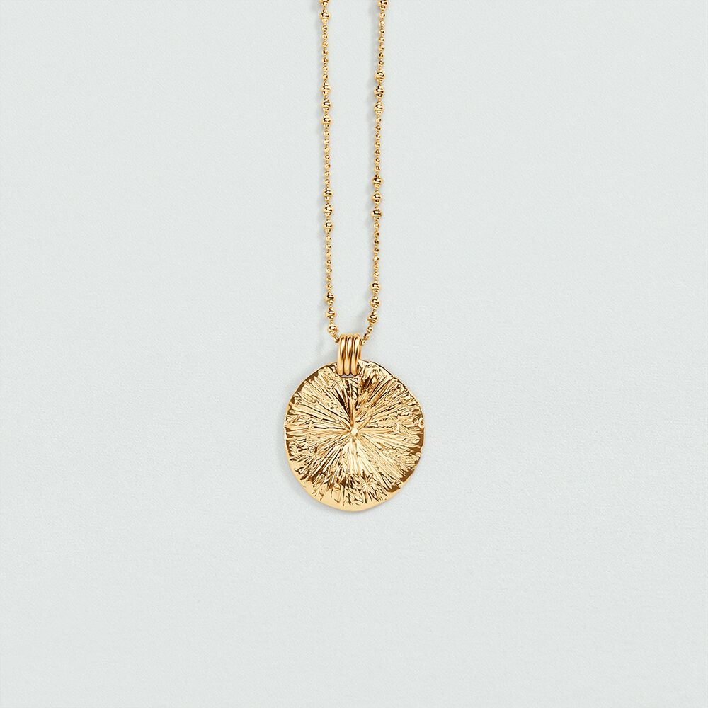 Collier long en chaîne boule en laiton doré à l'or 750/1000. Personnalisez votre bijou et changez-le au gré de vos envies en ajoutant à votre base chaîne un ou plusieurs pendentifs charms de notre collection Talismans. Ce bijou mesure 600mm et contient une rallonge de 50mm
