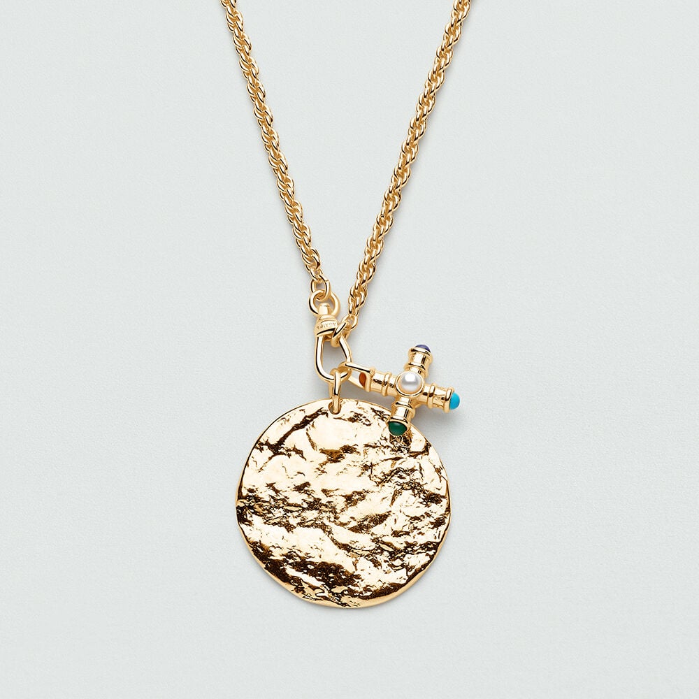 Collier long de maille tressée en laiton doré à l'or 750/1000. Personnalisez votre bijou et changez-le au gré de vos envies en ajoutant à votre base chaîne un ou plusieurs pendentifs charms de notre collection Talismans.